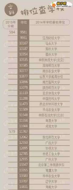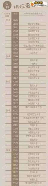 这是根据2014年广东省一本招生的排位情况,对照2015年最新数据,绘制的高考排位可报学校参考数据图。