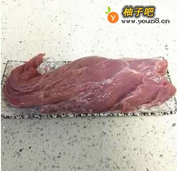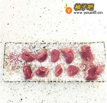 2把里脊肉切成小块,大概1cm*1cm比较合适,炸起来也能炸透。