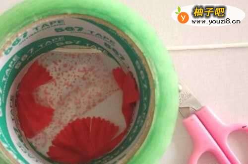 把最后一片花瓣装上去,这片只需要稍微压一下就可以浏览,然后用胶布固定一下就可以了。
