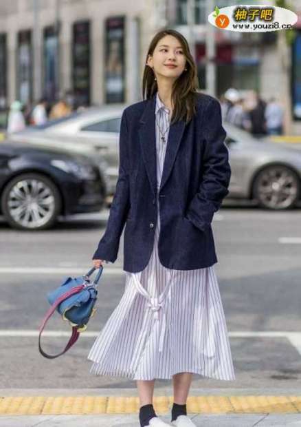 3若衣物本身暗藏直条纹,则更加理想,若能找遍衣橱都只有背心或者短裙款式,外加薄款深色长外套,都可以显得更瘦!