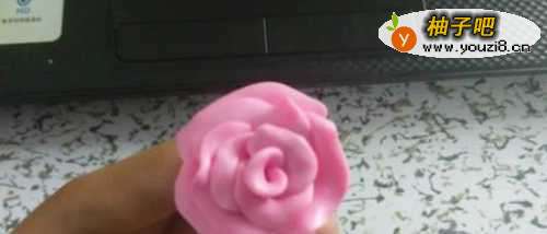 5最后将两个大花瓣包围在最外侧 美美的橡皮泥花便做成了。