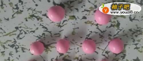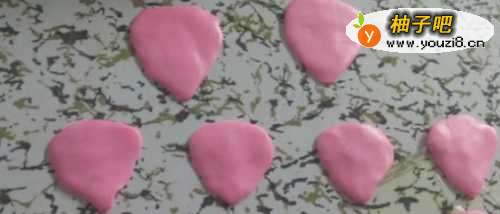 2接着将每个小球分别搓成雨滴状 然后压扁。