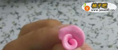 3取最小的一个小花瓣 将其卷曲 便做成花心了,取另一个小花瓣将其围绕花心贴上。