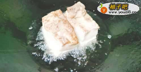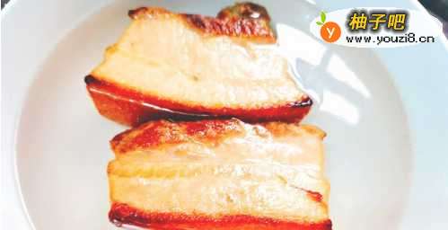 5锅烧六成热,放较多植物油,油温七成热时把五花肉放入锅,先放有皮子的那一面,中火炸至金黄。
