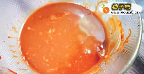 8取一个小碗倒入红色的腐乳,酱油,白糖,酱油搅拌均匀。