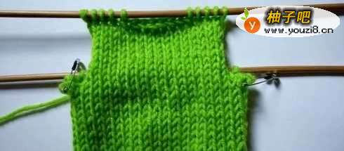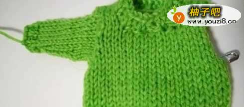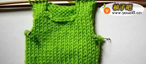 8然后把袖子挑起来,包括留下的左右袖子各两针。挑起来后开始编织下针,在腋下的延长线上根据袖子的需要的大小来收针。