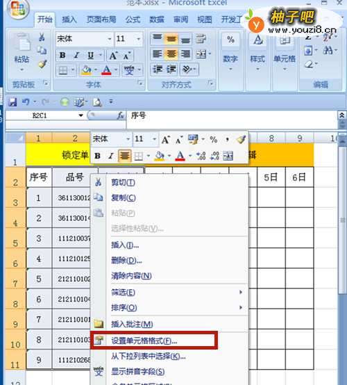 3、右击鼠标, 选择【设置单元格格式】。