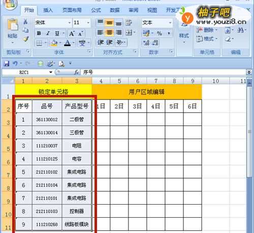 打开Excel文件,输入数据。如何锁定所选区域的单元格呢?
