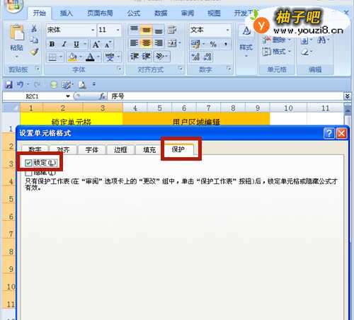 4、选择【保护】项→勾选【锁定】→点击【确定】。