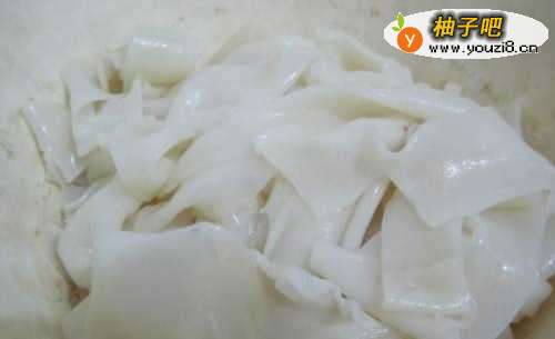 面皮用水淘过后,切宽条