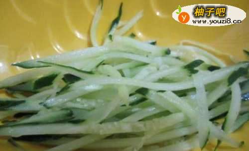 2将黄瓜洗净切丝备用