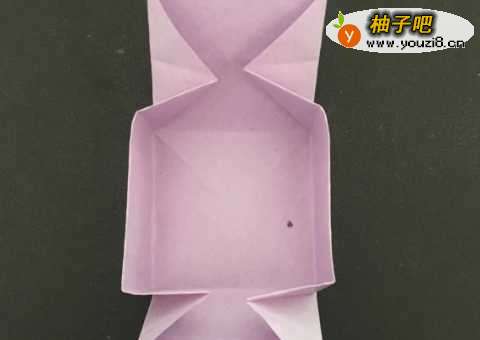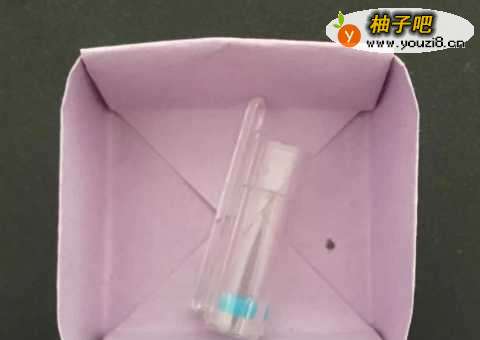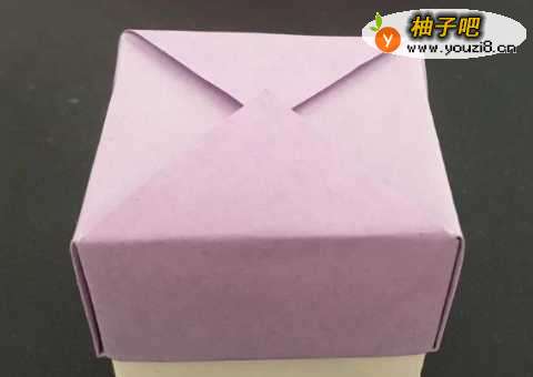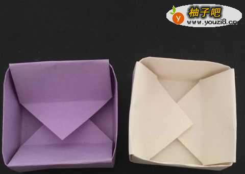 8再准备一张正方形彩纸,比上面那张稍微小一点,用同样的方法折出一个盒子。
