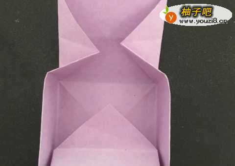 沿着折痕,将上下两个角竖起来。