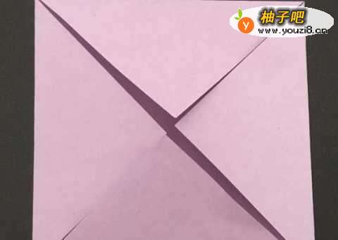 2将彩纸的四个直角像中心方向折,如图所示。