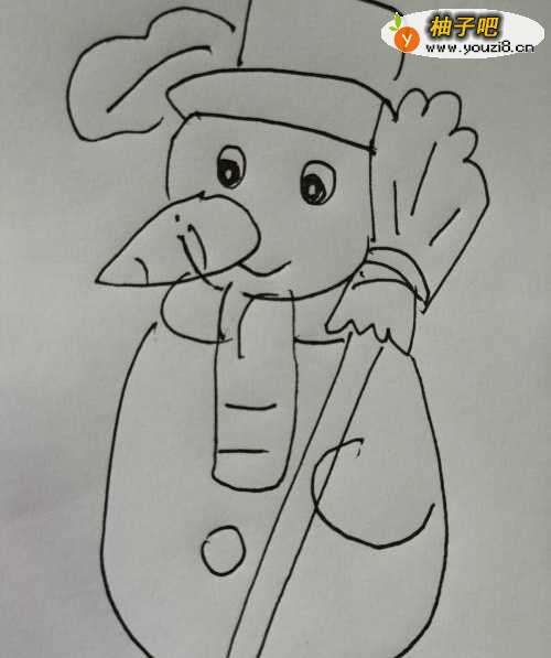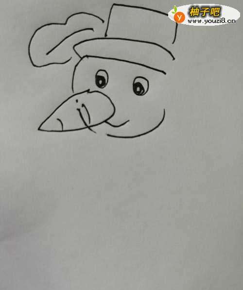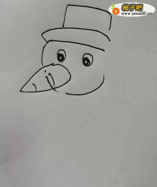 3第三步,然后继续画出雪人宝宝的嘴巴和鼻子,注意鼻子细节的画法。