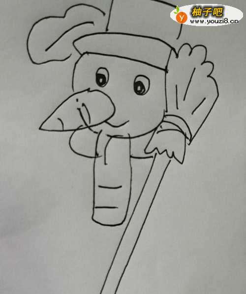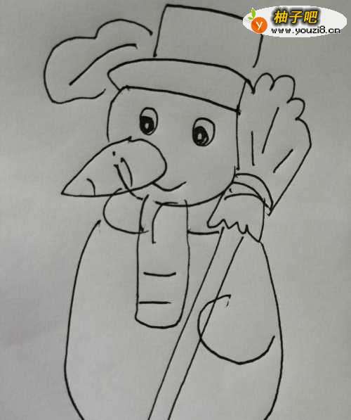 4第四步,接着我们继续画出雪人宝宝的手上的扫帚,注意扫帚细节的画法。