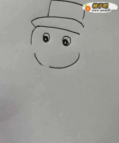 第一步,我们先把雪人宝宝的头画出来,注意雪人宝宝头顶帽子的画法。