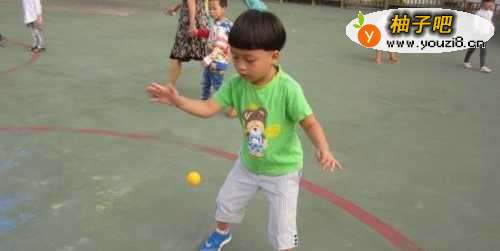 2可以让孩子们用球拍碰乒乓球做投篮练习。