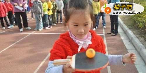 在幼儿园,老师们可以让孩子排好队,然后地上划出一段距离,让孩子们用球拍运送一个乒乓球从起点运输到终点,这个游戏可以锻炼孩子们的平衡能力。