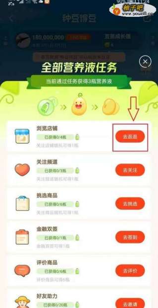 5点击红色按钮,比如“去完成”,完成任务,获得营养液