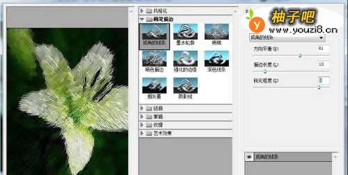 3弹出「成角的线条」对话框,如下图所示。