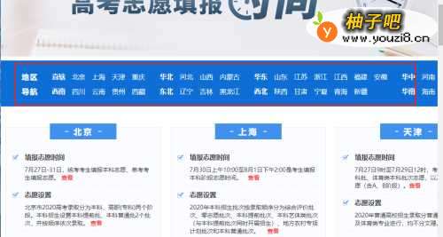 2接着我们可以看到地区导航,选择你所在的省份。
