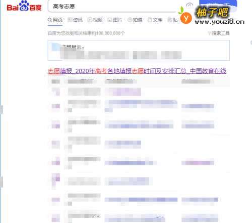首先打开百度搜索,输入高考志愿关键词。