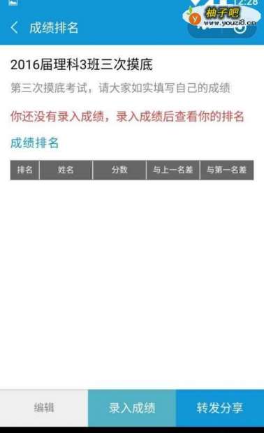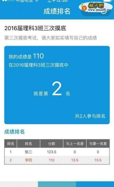 7如果想收集大范围内的考试成绩,比如北京市的中考成绩,可以在创建排名的时候,设置为公开的排名。其他用户就可以搜索到这个排名了。如果希望这个排名可以按照地理位置来筛选,可以要求用户输入成绩的时候,同时指定地点。比如一个用户输入了成绩之后,将地点定在了一个中学。当其他用户在显示排名结果的时候,可以增加筛选条件,比如定位在这个中学的位置,这就可以看到,所有定位在这个中学的考试成绩统计了。