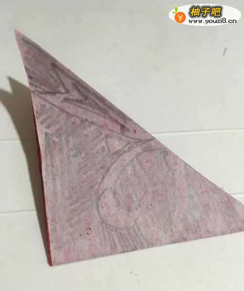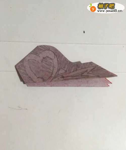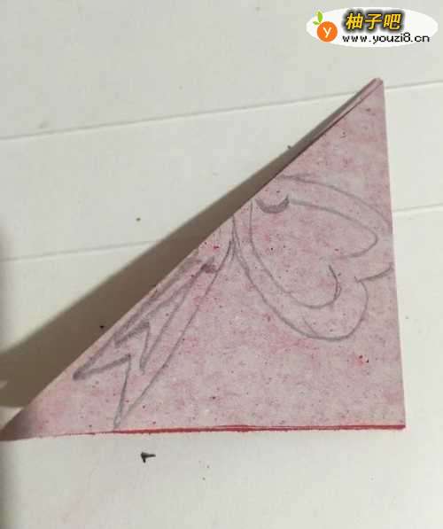 3第三步 左下角与右上角对折好之后 再旋转一下 单页散边放在下面 然后拿起绘图铅笔 画上一边的蝴蝶结和一只飘带