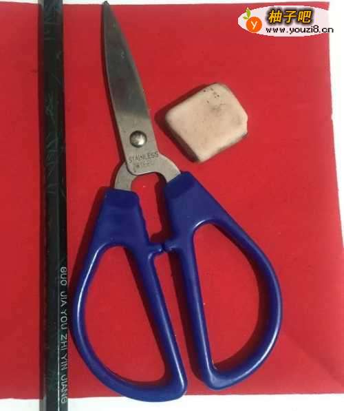 5第五步 都涂实好之后 再拿起手工剪刀开始裁剪 先把蝴蝶结外面周围多余的彩纸剪去