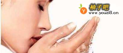 3然后,洗脸一定要洗干净不能马虎,特别是T区要上下运动仔细洗,脸颊五指张开轻轻向上打圈。水温40度,比手温稍高即可,用手捧水向脸上泼,一定要将洗面奶洗干净。热水洗过后,再用冷水泼脸20次左右就可以了。洗好后不要用毛巾擦干,要用手拍干。
