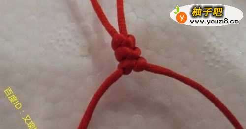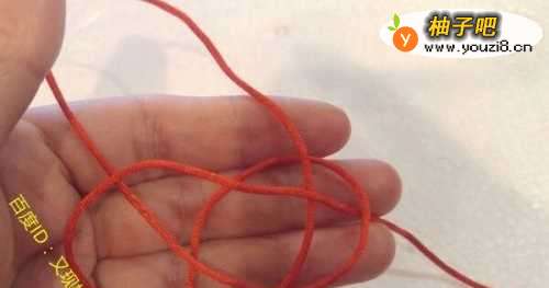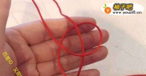 先将红绳进行对折一下,见下图展示,这样就分成左绳和右绳。
