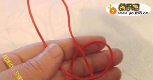 2然后我们将红绳放在左手上面,将左绳从右绳的上方穿过,再从右绳的下方穿过,这样左绳与右绳就组成了一个线圈。