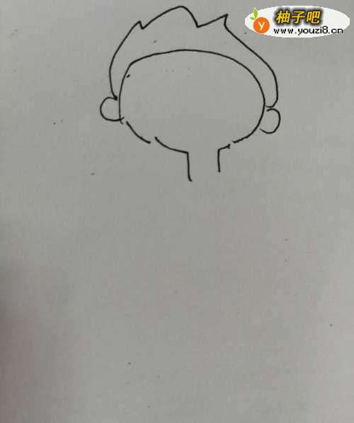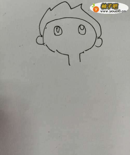 2第二步,接着继续画出男孩的两只可爱的耳朵,注意耳朵轮廓的画法。