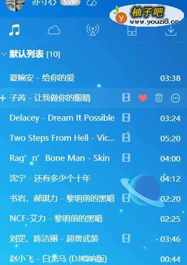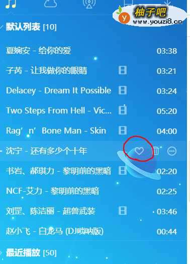 5把鼠标拖动到你想要收藏的歌曲中,点击小红心,即可收藏