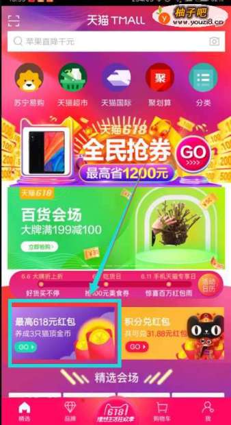 打开手机天猫,在首页有一个入口,之前在最上方,现在已经到左下角的位置了,点击进入