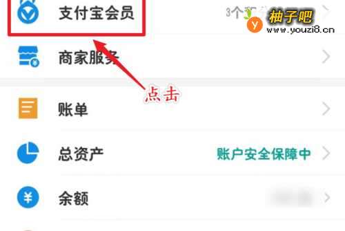 3点击“支付宝会员”选项。