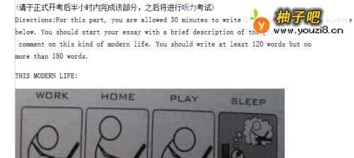 2先分析今年可能出现的作文类型,一般是每一次轮流换一种类型,(一种是看图写文,另一种是给出一句话,让你以这句话为出发点,写出自己的见解),所以你要看上次是哪种类型的作文,而练好对应另一种类型的作文(占15%,106.5)作文是要考的第一部分,首先你得在平常加紧练,要求达到20分钟内写完(考试时间为30分钟,30分钟过后立马收卷),因为 你得为听力腾出足够的时间,四级的听力是需要时间去观察句子的