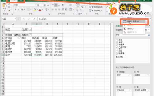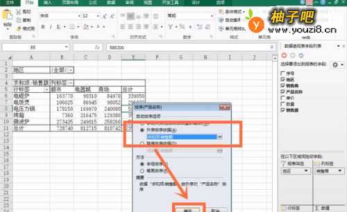 4在【排序(产品名称)】弹出框中的【自动排序选项】更改【升序排序依据】为【求和项:销售额】并确定。如图所示: