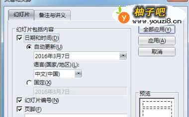 2,在弹出的【页眉页脚】对话框中进行相应的设置。