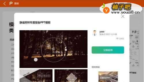 打开PPT页面,会看到模板页面,选择你需要的模板,点击【立即应用】,即可使用该模板。