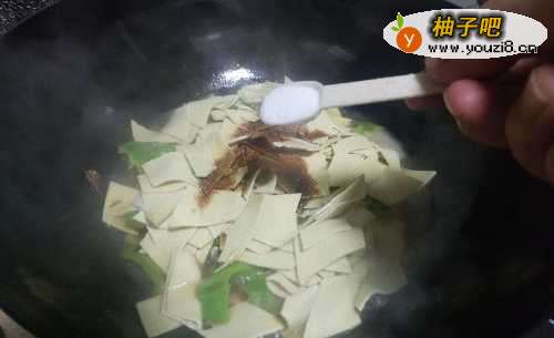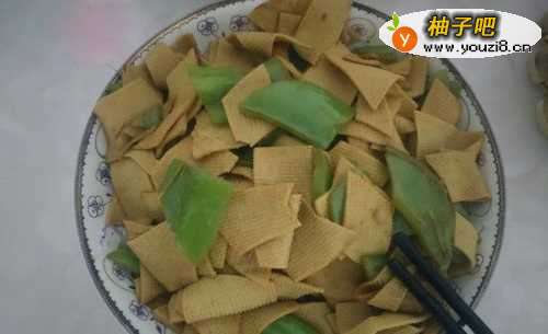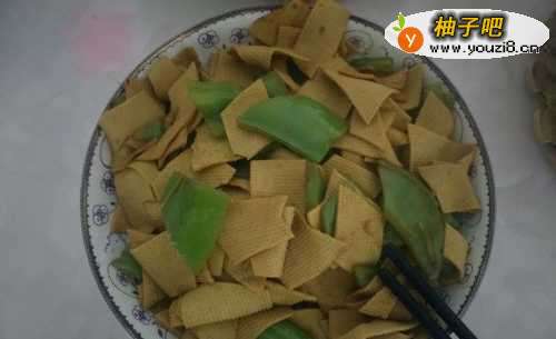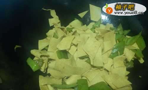 6装盘上桌,美味的尖椒炒豆皮就做好了,香辣又下饭!