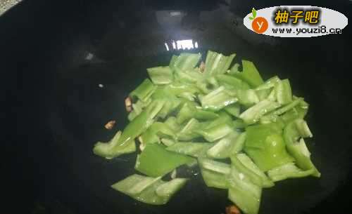 3起锅烧油,加入葱花和蒜末爆香,然后加入青椒翻炒1分钟!