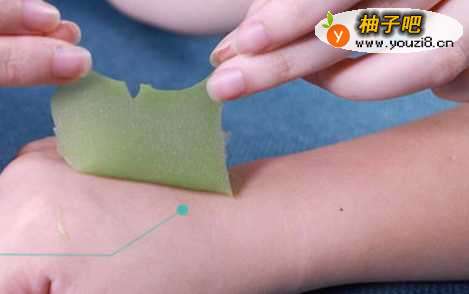 4搅拌完成后,将搅拌光矿态好的软膜涂抹在脸上,涂满整张脸为止;