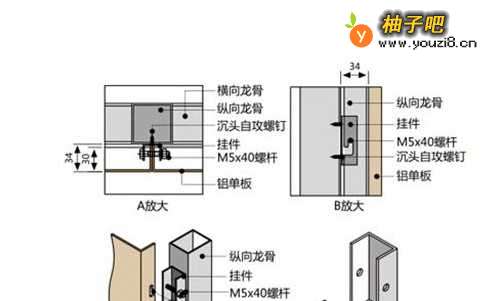 铝单板幕墙安装结构图: