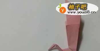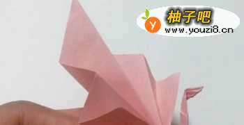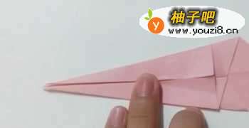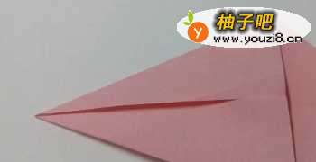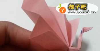 6把三角形往上折,再折出孔雀的嘴巴来,如图所示。