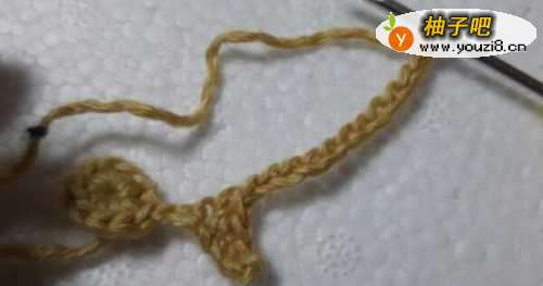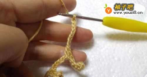 2拉出7个辫子针出来,然后在倒数第2针开始顺次钩织钩织4个短针,余下2针。