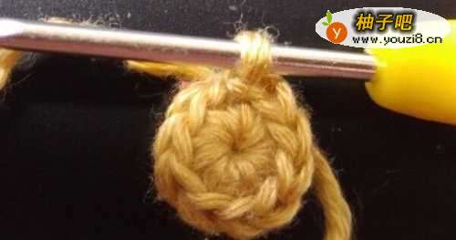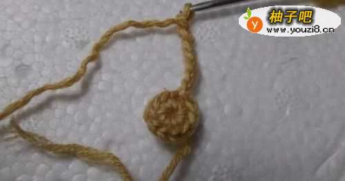 8然后再在2步骤余下的2个辫子针里面钩织2个短针,与起针的第1个短针作引拔针连接,抽线断线就完成钩织了。