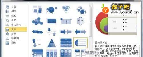 3点击【SMARTART】后,弹出【选择SMARTART图形】对话框,如下图所示。