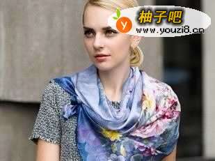 搭配技巧五:花宙称丝巾搭配衣服时需要根据衣服的风格选择不同的系丝巾的方式。除了直接系花丝巾,还可以用图中的这种方式,也是非常洋气的。